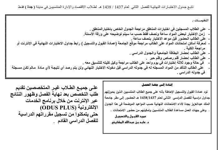 عمادة القبول والتسجيل Kau On Twitter جدول الإختبارات النهائية لطلاب الانتساب كلية الإقتصاد والإدارة بجده