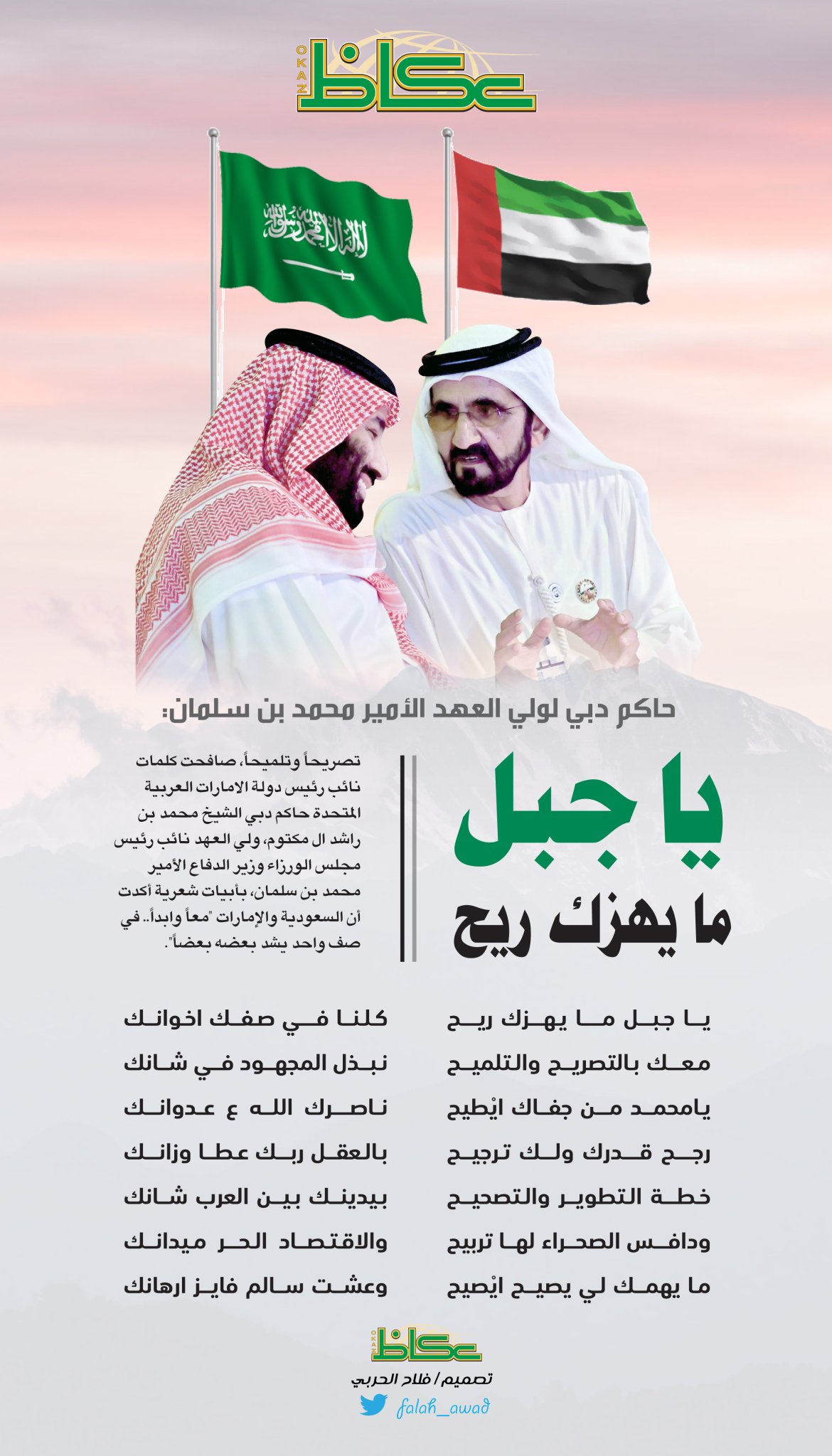 صحيفة عكاظ On Twitter حاكم دبي لولي العهد الأمير محمد بن سلمان يا جبل ما يهزك ريح Https T Co 6bpxhmp56r عكاظ