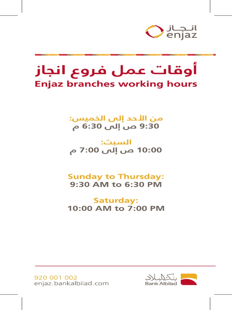 Enjaz Albilad Batha Riyadh Opening Times Tel 966 9200 01002